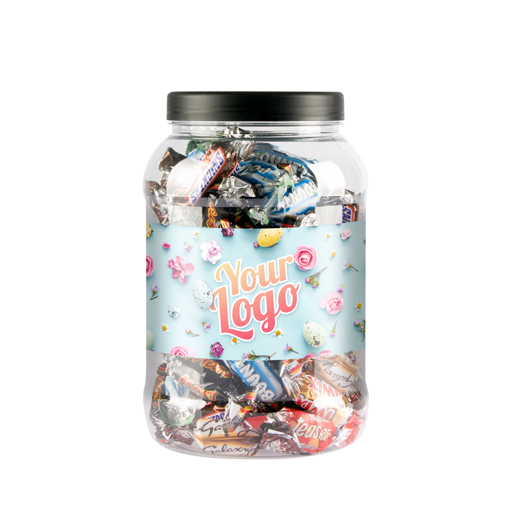 På forsiden af krukken monterer vi et label med dit layout i et flot farvetryk lige til at have stående fremme i butikken, på kontoret eller pakket med som gave til dine kunder.