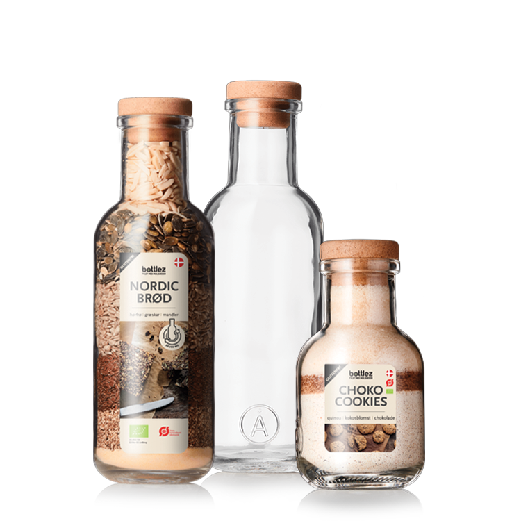 I flasken finder man økologiske ingredienser lagt i dekorative lag – lige til at bage et lækkert brød derhjemme. Designet er inspireret af den klassiske mælkeflaske og emmer af nostalgi og omtanke.