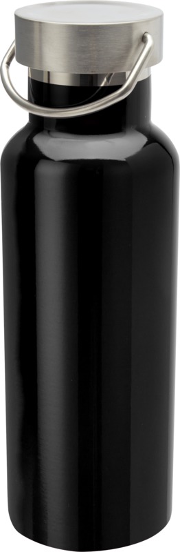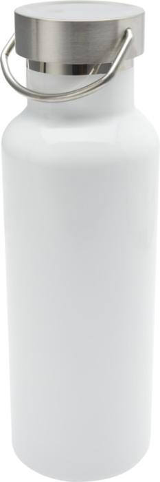 Solid vakuumisoleret RCS certificeret vandflaske med dobbelt væg og i rustfrit stål med skruelåg i rustfrit stål og solid håndtags løkke i rustfrit stål. Kapacitet: 500 ml. Lækagesikker. Leveres i en æske. RCS certificeret recycled rustfrit stål.